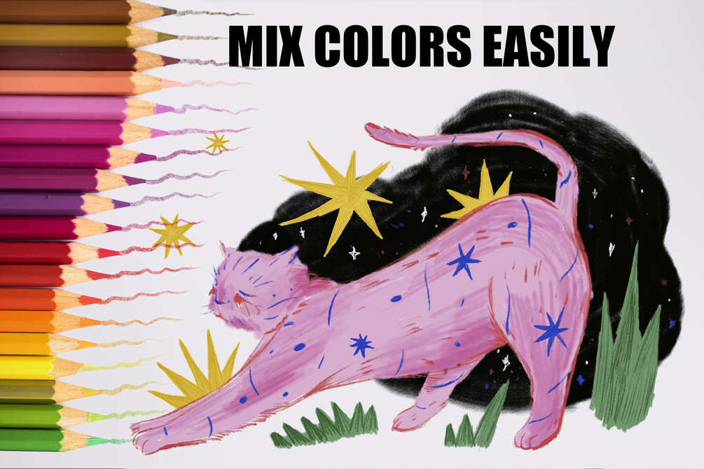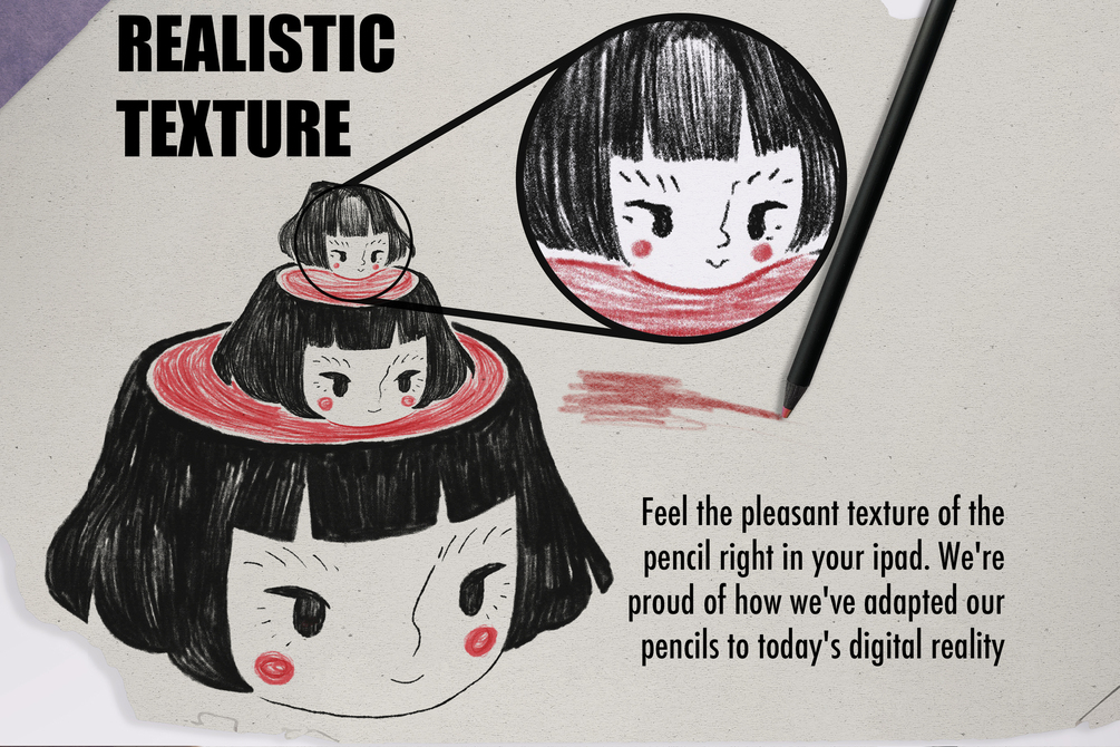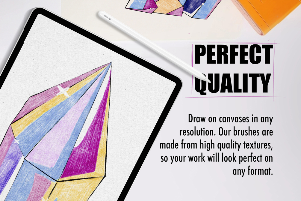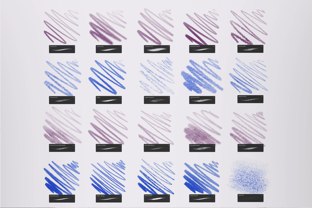 With this collection, you'll find an array of pencil brushes that offer different levels of hardness, allowing you to create varying degrees of depth and shading. Additionally, there are 3 blending brushes that lend a soft, waxy texture to your drawings, adding a playful and vibrant element to your artwork.